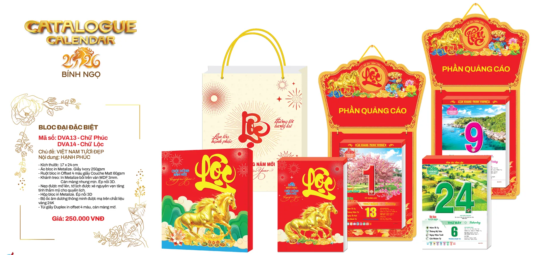 - Kèm theo 02 ốc vít đầu tròn không mũ, ốc chữ U tạo thẫm mỹ cho xé lịch, không để lại phần giấy thừa.