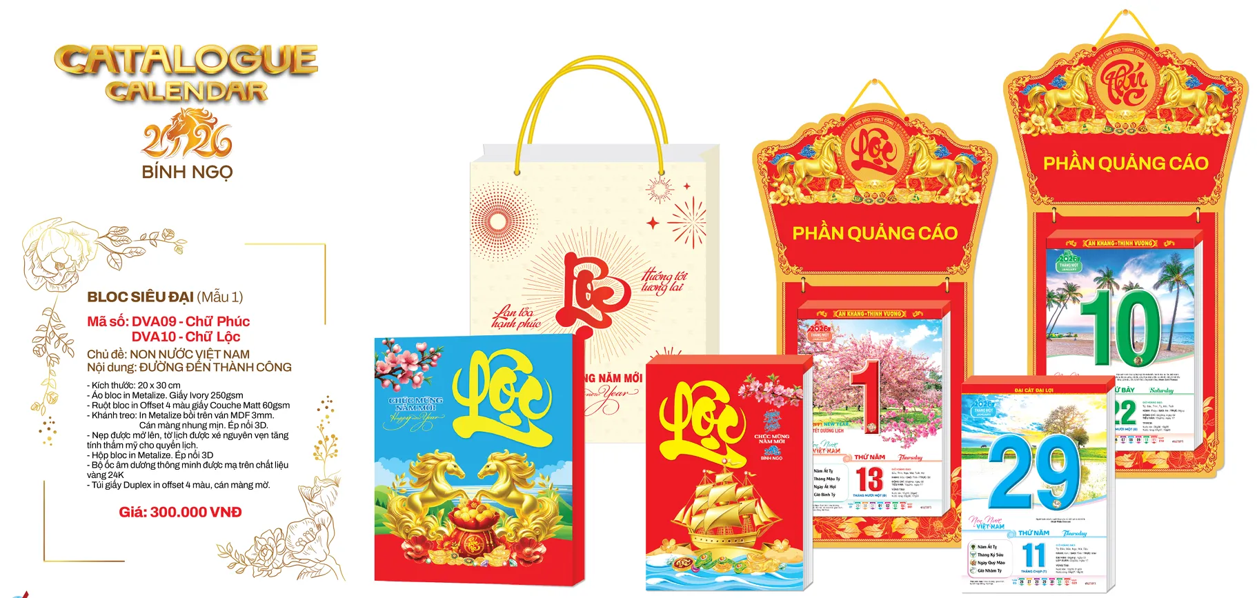 - Kèm theo 02 ốc vít đầu tròn không mũ, ốc chữ U tạo thẫm mỹ cho xé lịch, không để lại phần giấy thừa.