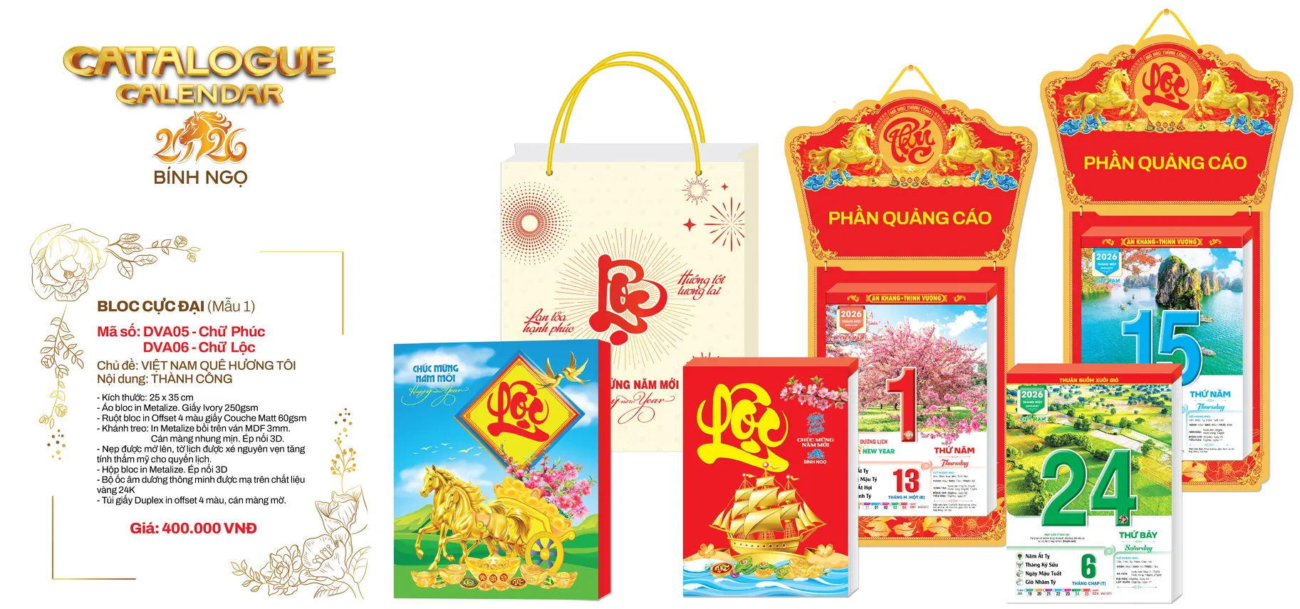 – Bìa treo in metalize, ép nổi 3D, gắn chữ Lộc cẩm thạch