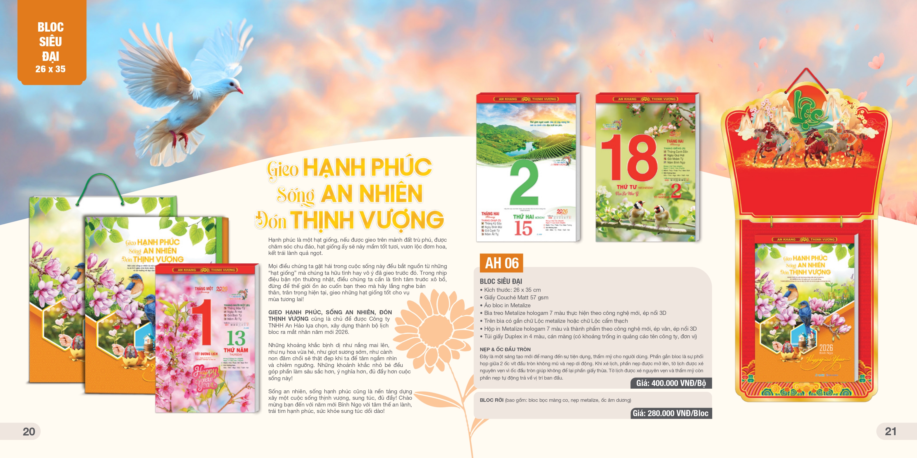 - Kèm theo 02 ốc vít đầu tròn không mũ, ốc chữ U tạo thẫm mỹ cho xé lịch, không để lại phần giấy thừa.