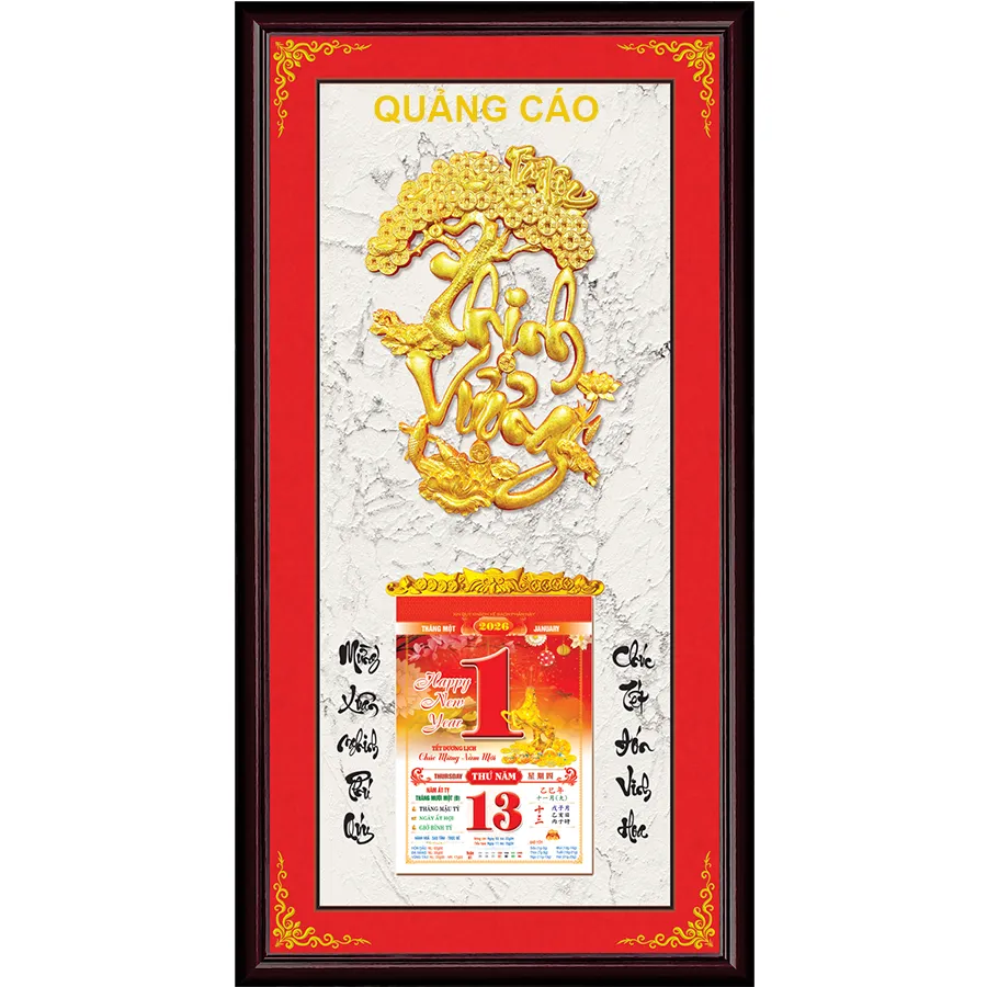 - Bìa lịch bằng Gỗ HDF dày 9mm, loại cao cấp kháng ẩm chống mối mọt, không cong vênh.