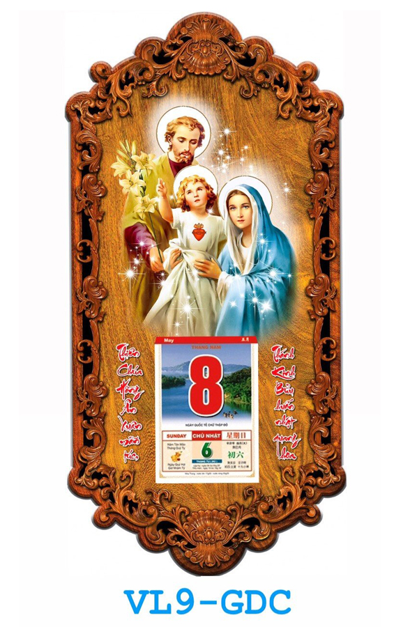 - Bìa lịch bằng Gỗ HDF dày 9mm, loại cao cấp kháng ẩm chống mối mọt, không cong vênh.