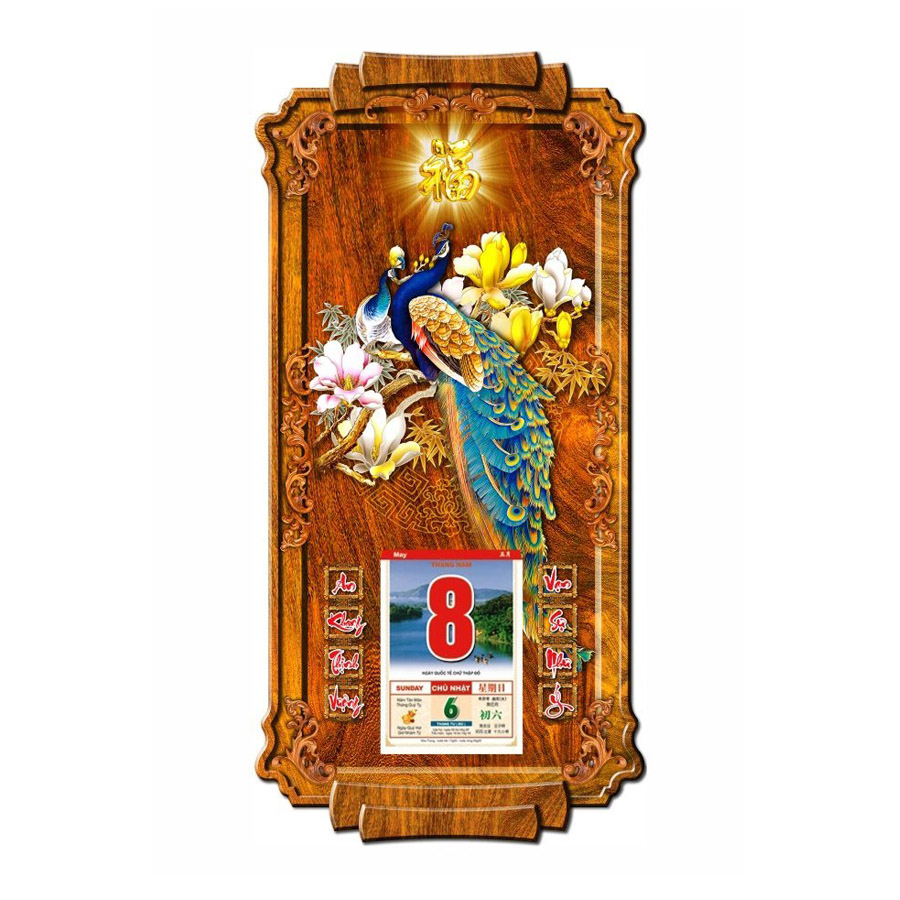 - Bìa lịch bằng Gỗ HDF dày 9mm, loại cao cấp kháng ẩm chống mối mọt, không cong vênh.