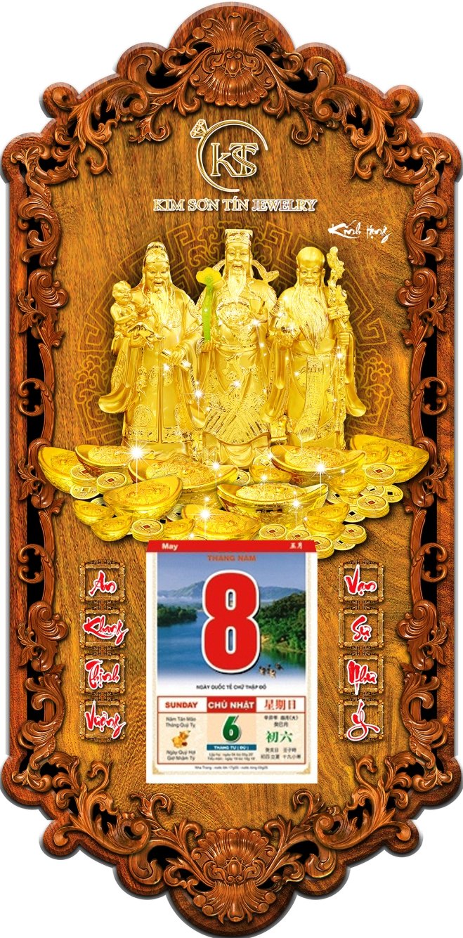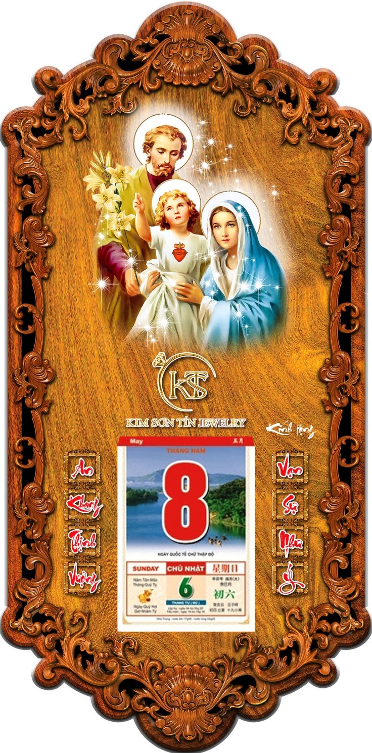 - Bìa lịch bằng Gỗ HDF dày 9mm, loại cao cấp kháng ẩm chống mối mọt, không cong vênh.