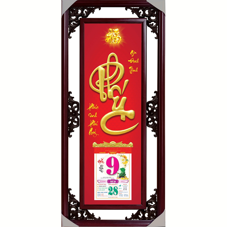 LỊCH KHUNG NỀN GỖ ĐẮP PHÙ ĐIÊU - LÀM THỦ CÔNG.