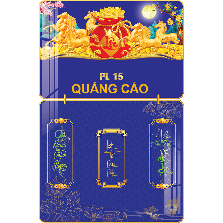 KT LỊCH: 39 X 81 cm, Khung gỗ tự nhiên, phù điêu chữ đúc composite nhũ vàng, gắn nổi, GẮN BLOC 15 X 21CM.